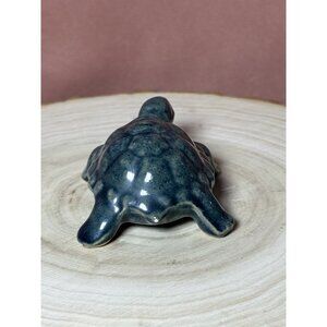 TURTLE handmade Art Pottery Figurine Trinket Clay Ceramic 2.3inches Blue/Green