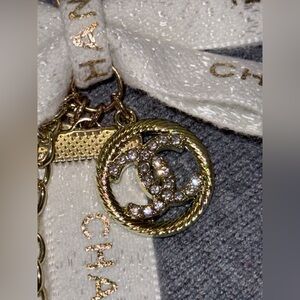 Charming gold heart key design. Features elegant CHANEL beauty branding. Snowflake, CC and a esrl charms. New with box