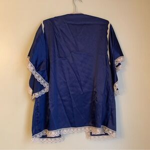 Vtg Delicates Womens Lingerie Robe Blue Satin Poly Lace large Mini Trad NWT