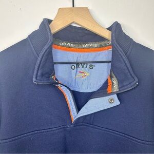 Orvis Men’s Navy Blue Signature 1/4 Zip Sweatshirt, Size XL.