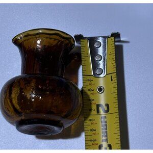 Vintage Amber Art Glass Mini Pitcher Hand Blown MCM Swirl Creamer