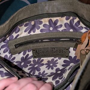 Chic Nino BOSSI shoulder bag. Olive body with tan accents. Perfect for everyday elegance.