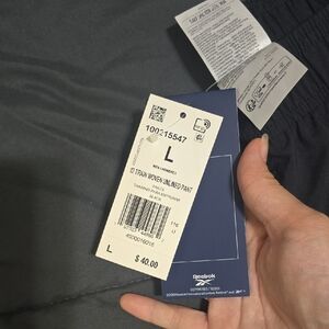 Sleek and comfortable unlined windpants. Ideal for workouts or lounging. Features Reebok logo at left thigh. New with tags. Size Large. Comes from a smoke-free home.