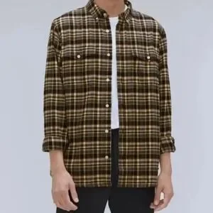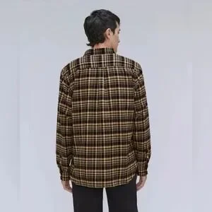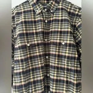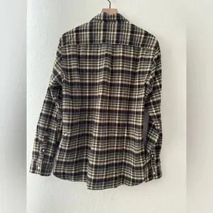 Wrap yourself in the cozy embrace of this Everlane plaid flannel shirt. Rich tones of beechwood blend with deep charcoals and warm cream to create a classic plaid pattern that exudes timeless style. Designed with a comfortable button-down front and two chest pockets, this shirt offers both practicality and a relaxed aesthetic. The soft fabric promises all-day comfort, making it perfect for layering on a crisp autumn day or enjoying a casual weekend outing.