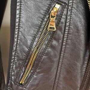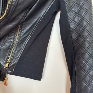 Express Black Faux Leather Quilted Moto Jacket w Gold-tone Zippers