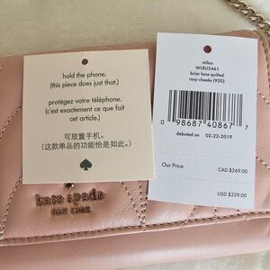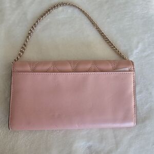 Kate Spade Pink Saffiano Leather Wallet Wristlet with Short Gold Chain Handle