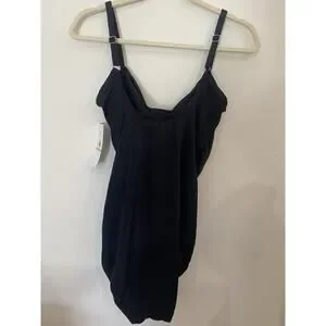 Jantzen Size 12 Surplice Draped One Piece Swimsuit Black Tummy Control NWT $92