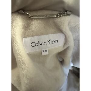 Calvin Klein Down Puffer Coat Faux Fur Hood Beige Full Zip Women's Size XL