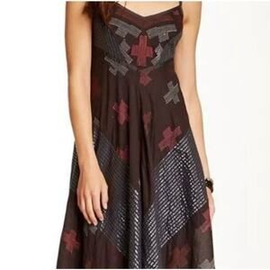 Free People Crossing Paths Tassel Trim Cotton Embroidered Maxi Dress Sz XS NWT