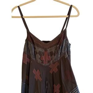 Bohemian and effortlessly chic, this Free People Crossing Paths Maxi Dress features beautiful geometric embroidery and playful tassel trim for a free-spirited look. Designed with delicate adjustable spaghetti straps and a flowy, relaxed silhouette, this dress moves beautifully and is perfect for warm weather, vacations, festivals, or layering year-round.