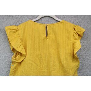 This is a Savannah Jane Ruffle Cap Sleeve Embroidered Top that is a size Medium. It is 100% Cotton. Laying flat, it measures: Armpit to armpit-21" and the Length is 24.5". It is in great condition.