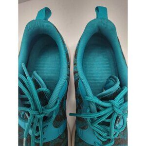 Step out in style with these Nike Roshe One sneakers in a beautiful Teal/Malt color combination. Designed for women, these sneakers feature a lightweight and breathable synthetic upper with lace-up closure for a secure fit. The shoe shaft style is low top, with accents of lace and Nike's iconic logo. The outsole is made of durable rubber, while the insole is foam for added comfort during running and jogging. The Nike Roshe One sneakers are part of the Nike Roshe product line, which is known for its colorful and sporty themes. These sneakers were released in 2015 with a style code of 705217-301 and were manufactured in Vietnam. The EU shoe size is 38.5, and the shoe width is standard.