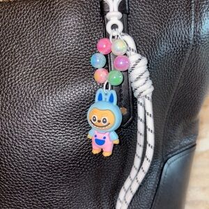 Adorable keychain featuring a cute character and colorful beads. Perfect for adding charm to your accessories.