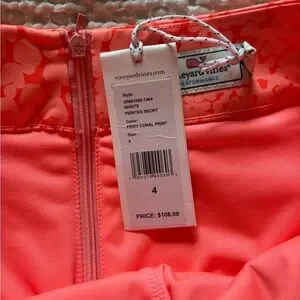Bright coral skort with stylish print. Features a convenient back zipper.