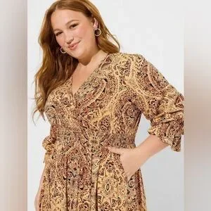 Torrid Midi Challis Smocked Waist Surplice Dress Size 2X