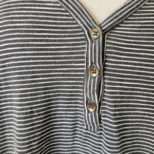 Pact Organic Cotton Gray Striped Tiered Maxi Dress XL Henley V Neck Casual XL