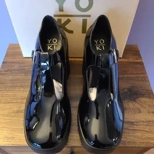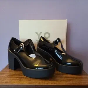 Yoki 1990's inspired leatherette platform t-strap heels, brand new in box. Adjustable side belt. Heel height measures four inches, front platform is one inch. Size 8 1/2. Feel free to leave questions in the comments, thank you!