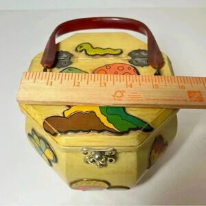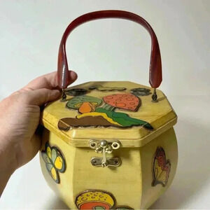 OOAK Vintage 60s Mushroom Themed Octagon Box Purse Boho Cottagecore with mirror