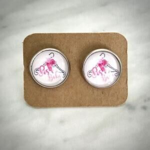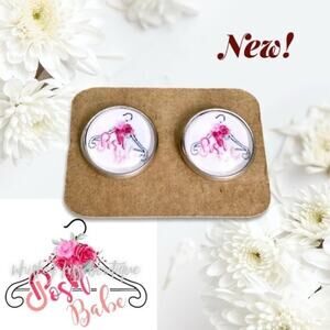Cabochon stud earrings in custom Poshmark Babe floral hanger design