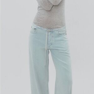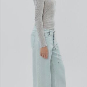 Elevate your style with these chic light blue wide leg jeans. Perfect for a casual day out or a stylish evening look.