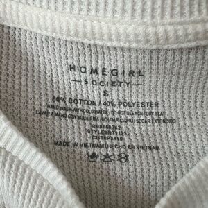 Cute ribbed crop top by Homegirl Society! “Stay Trippy” and mushroom embroidery. Ruching and ties on the sides. Size Small. In great condition!