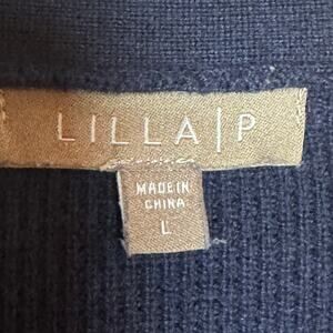 Lilla P - Size Large -Navy Blue - Cotton Blend - V-Neck - Snap Front - Mixed Knit Cardigan Sweater