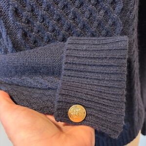 Talbots Navy Blue Cable Knit Button Cuff Sweater
