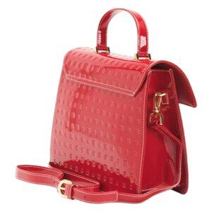 top carry handle, adjustable detachable shoulder strap, debossed brand logo design, contrast stitching, gold tone brand logo hardware