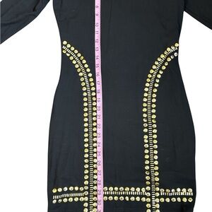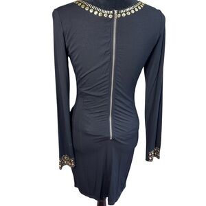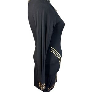 Black Bodycon Dress with Gold Stud Embellishments – Long Sleeve – Size L
