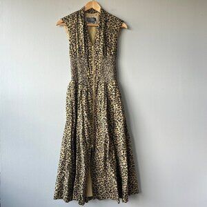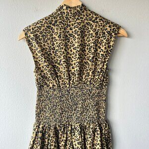 Anthropologie Leopard Print Zip Front Smocked Waist Dress XS