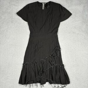 Isabel Marant Women’s 36 Small Black Linen Asymmetric Ruffle Dress Raw Hem