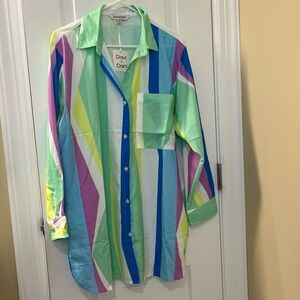 🆕 Davi & Dani Women's Multicolor Striped Long Sleeve Oversized Blouse Size M