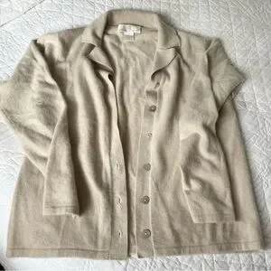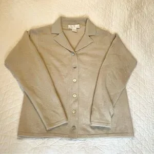 100% CASHMERE Vintage Precious Fibers Beige Oyster Button Cardigan Sweater M