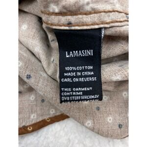 Lamasini Western Shirt Mens LARGE Geometric Print Flip Cuff Pearl Snaps Cowboy Rodeo ***MAY RUN SMALL- Please See Measurements in Photos to ensured desired fit***
