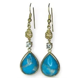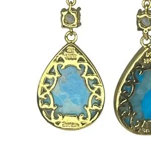 Beria Collection 18k Gold Over Bronze Turquoise Stone Dangling Crystal Earrings