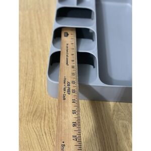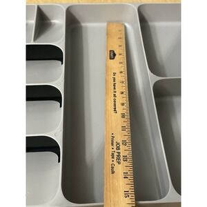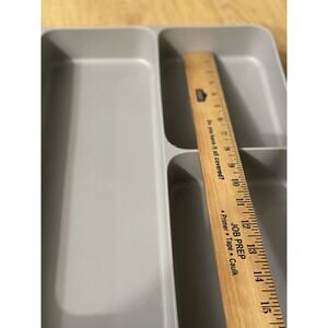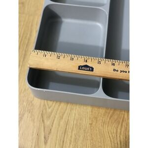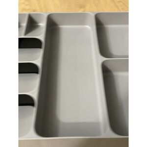 The Joseph Joseph DrawerStore Cutlery Organizer is a versatile tray designed to store utensils and gadgets in the kitchen. Made of durable polypropylene material in a sleek gray color, this organizer has more than 5 compartments to keep your kitchen tools neatly organized. Measurements and condition in photos
