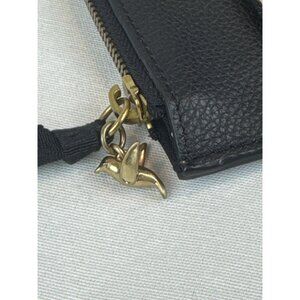 • Brass bird charm on zipper