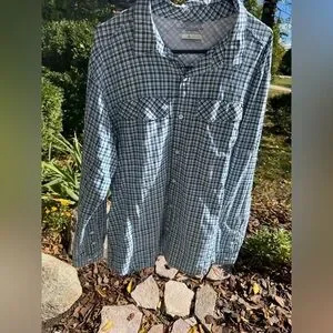 Columbia Omni shade sun protection Blue and White Plaid Men's Shirt XL