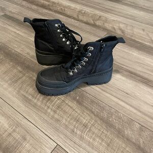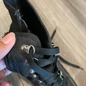 These adorable ankle booties feature both a inside zipper and lace up front! Also has silver D shape style shoe lace holders.