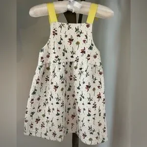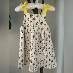 Charming floral dress. Features bright yellow straps. Perfect for casual outings.
