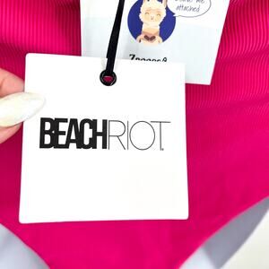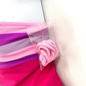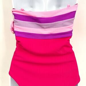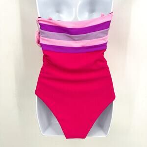 BEACH RIOT Jessa Bandeau One Piece Swimsuit Medium Pink Raspberry Colorblock NWT