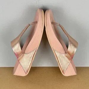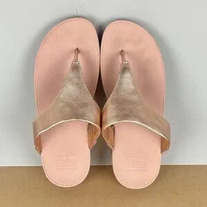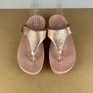 Fitflop Lulu Toe Post Thong Sandals Womens 7.5 Metallic Rose Gold Leather Casual