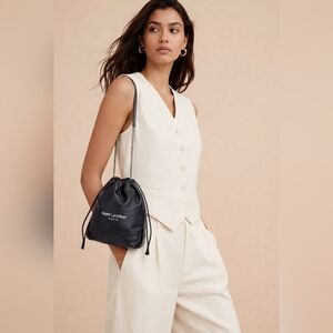 Saint Laurent Black Leather Teddy Bucket Bag