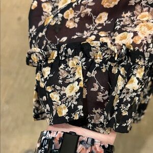 Orange Creek Black and Cream Floral Long Sleeve Dress-Like New!