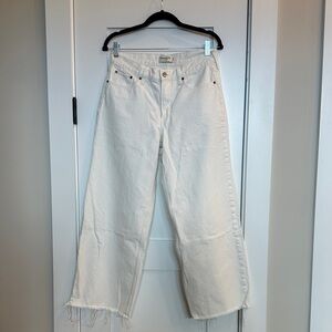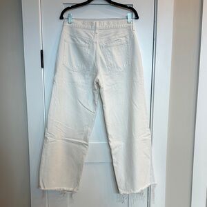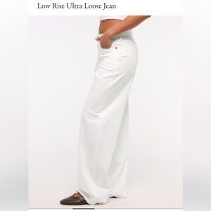 Our classic ultra loose jeans in a white wash with a raw hem. This fit features a 8.5” low rise, is relaxed at the waist and hips, and eases at the thigh into an ultra loose, full-length leg shape. We recommend buying your true size for a baggier fit. Size down for a closer fit. This jean is made from our lightweight rigid denim, a super soft authentic cotton fabric with no stretch. TENCEL™ Lyocell fibers are made from wood, a natural and renewable raw material carefully sourced from responsibly managed forests. The wood taken from nature is purposefully balanced with forest growth rates, to ensure the continued availability of this valuable resource.