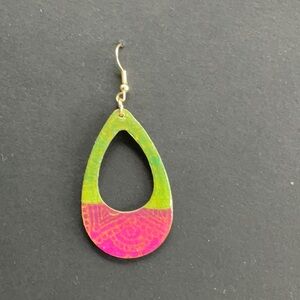 My newest passion is handmaking jewelry from my abstract mixed-media paintings and multiple layers of card stock. Each layer is carefully cut, glued, and sealed, so they are water resistant but not waterproof.