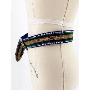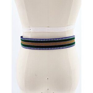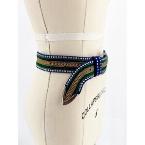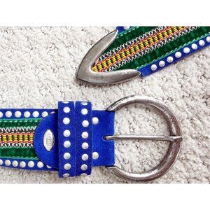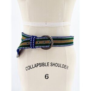 Nanni Blue Suede Embroidered Boho Belt S