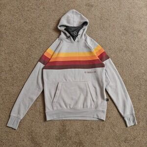 Troll Co. Hoodie Men Small Grey Retro Stripe Sweatshirt Workwear Lineman