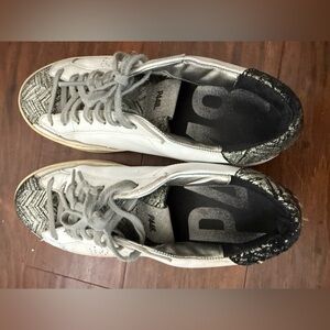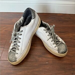 Stylish P448 sneakers with abstract print accents. White leather with black details. Perfect for casual wear. This is a used pair of P448 with lots a life left! Good condition, just normal wear. All of my items are well cared for and come from a smoke free home!