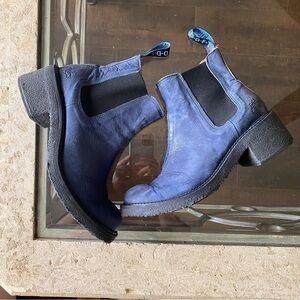 John Fluevog Boot Slacker Nap Crepe Soled Chelsea Leather Heeled Blue 11 GUC